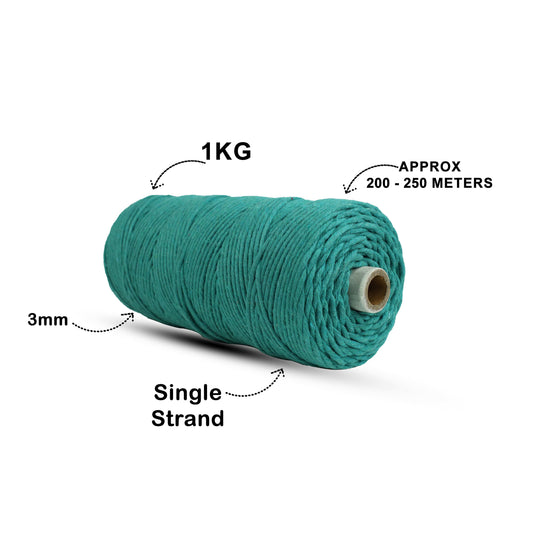 3mm Single Strand | Teal Blue | 200 - 250 Metres | 1kg Spool | Cotton | No 39