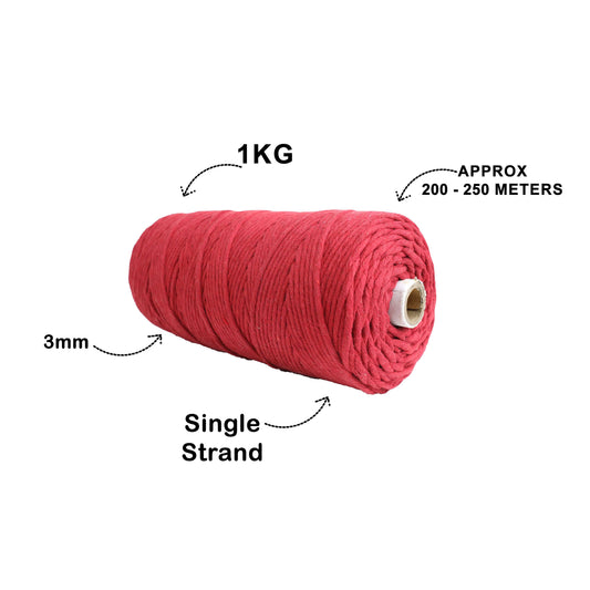 3mm Single Strand | Red | 200 - 250 Metres | 1kg Spool | Cotton | No 15