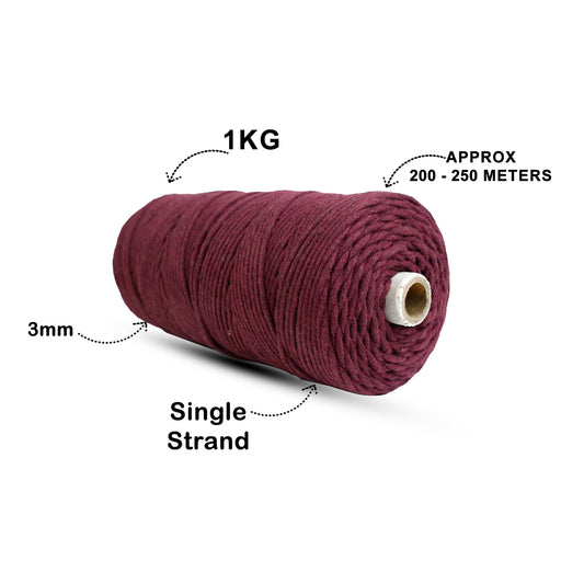 3mm Single Strand | Wine | 200 - 250 Metres | 1kg Spool | Cotton | No 29
