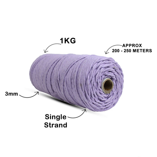 3mm Single Strand | Lavender | 200 - 250 Metres | 1kg Spool | Cotton | No 31