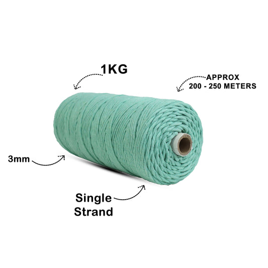 3mm Single Strand | Mint Green | 200 - 250 Metres | 1kg Spool | Cotton | No 35