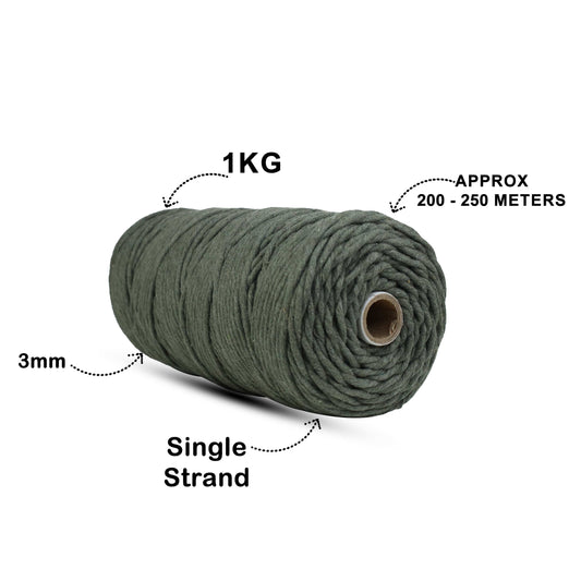 3mm Single Strand | Olive Green | 200 - 250 Metres | 1kg Spool | Cotton | No 14