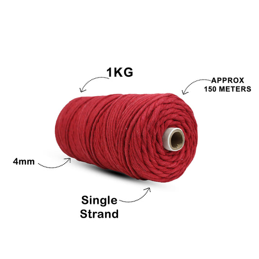 4mm Single Strand | Red | 150 Metres | 1kg Spool | Cotton |No 15