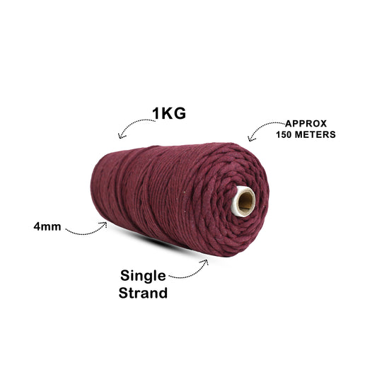 4mm Single Strand | Wine | 150 Metres | 1kg Spool | Cotton |No 29
