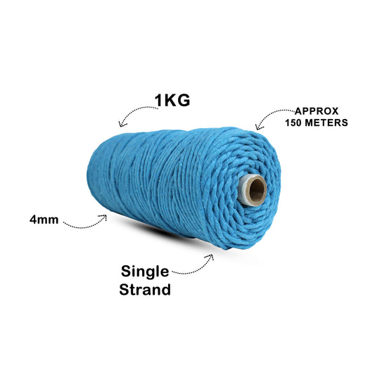 4mm સિંગલ સ્ટ્રાન્ડ | ટીલ બ્લુ | 150 મીટર | 1 કિલો સ્પૂલ | કપાસ