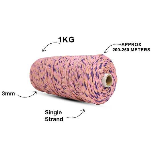 3mm સિંગલ સ્ટ્રાન્ડ | બેબી પિંક | 200 - 250 મીટર | 1 કિલો સ્પૂલ | કપાસ
