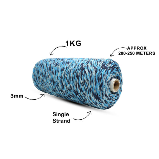 3mm સિંગલ સ્ટ્રાન્ડ | તેજસ્વી વાદળી | 200 - 250 મીટર | 1 કિલો સ્પૂલ | કપાસ