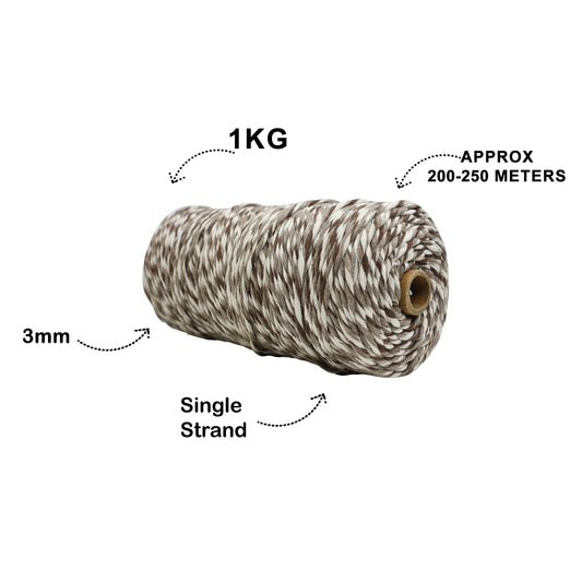 3mm સિંગલ સ્ટ્રાન્ડ | ચોકલેટ | 200 - 250 મીટર | 1 કિલો સ્પૂલ | કપાસ