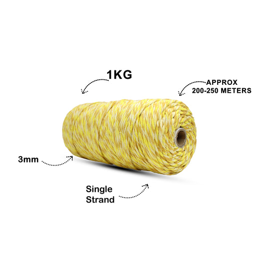 3mm બ્રેઇડેડ | પીળો | 150 મીટર | આશરે 700 ગ્રામ | કપાસ