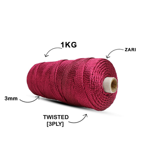 3mm ટ્વિસ્ટેડ (3Ply) | વાઇન | 200 - 250 મીટર | 1 કિલો સ્પૂલ | કપાસ