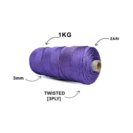3mm ટ્વિસ્ટેડ (3Ply) | વાયોલેટ | 200 - 250 મીટર | 1 કિલો સ્પૂલ | કપાસ