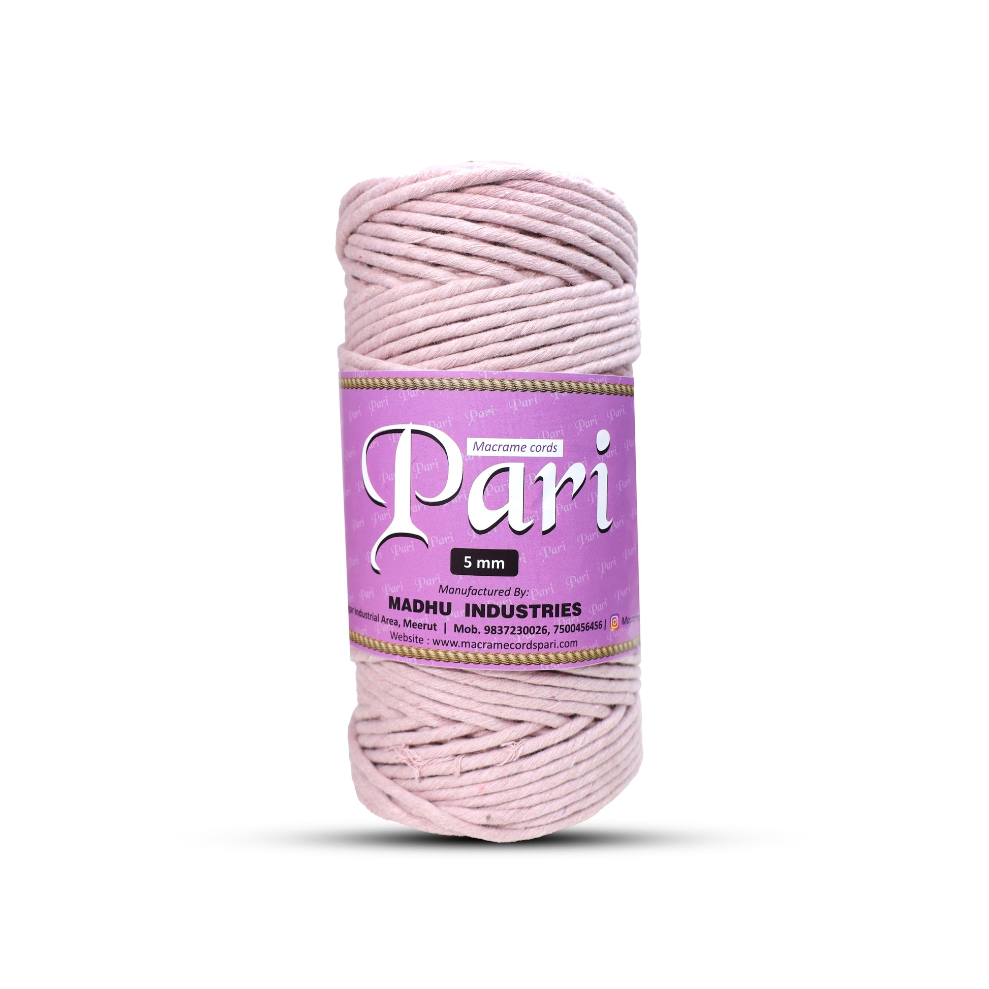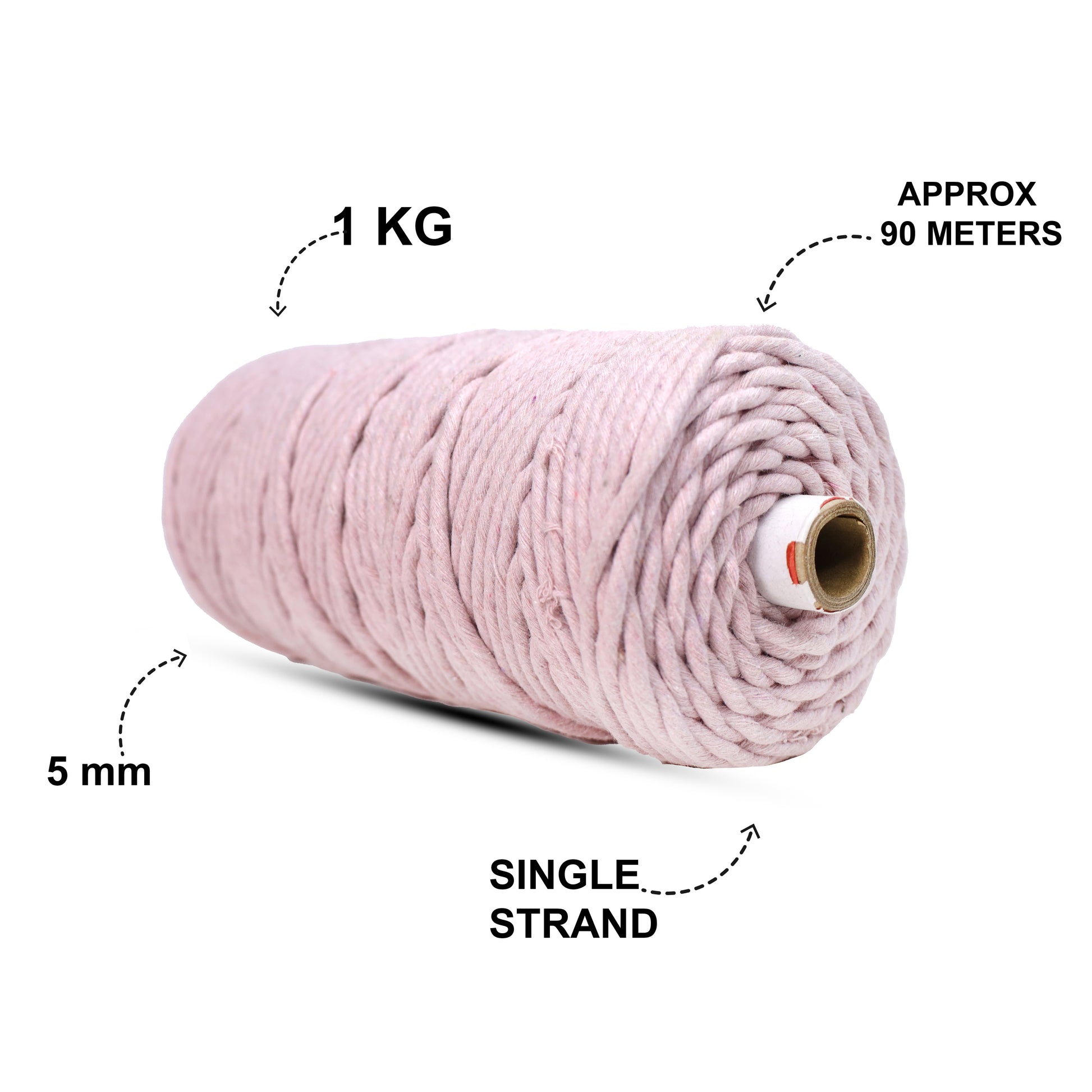 5mm સિંગલ સ્ટ્રાન્ડ | બેબી પિંક | આશરે 100 મીટર | 1 કિલો સ્પૂલ | કપાસ