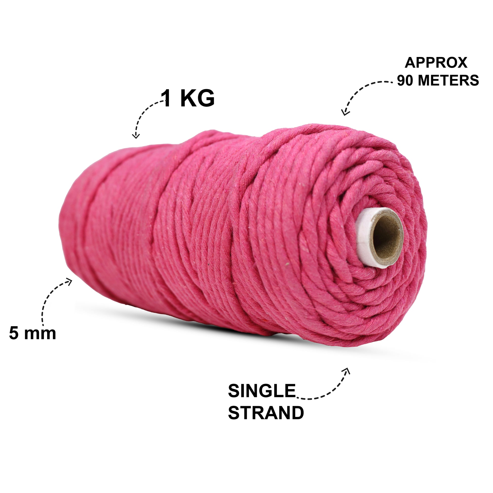 5mm સિંગલ સ્ટ્રાન્ડ | હોટ પિંક | આશરે 100 મીટર | 1 કિલો સ્પૂલ | કપાસ