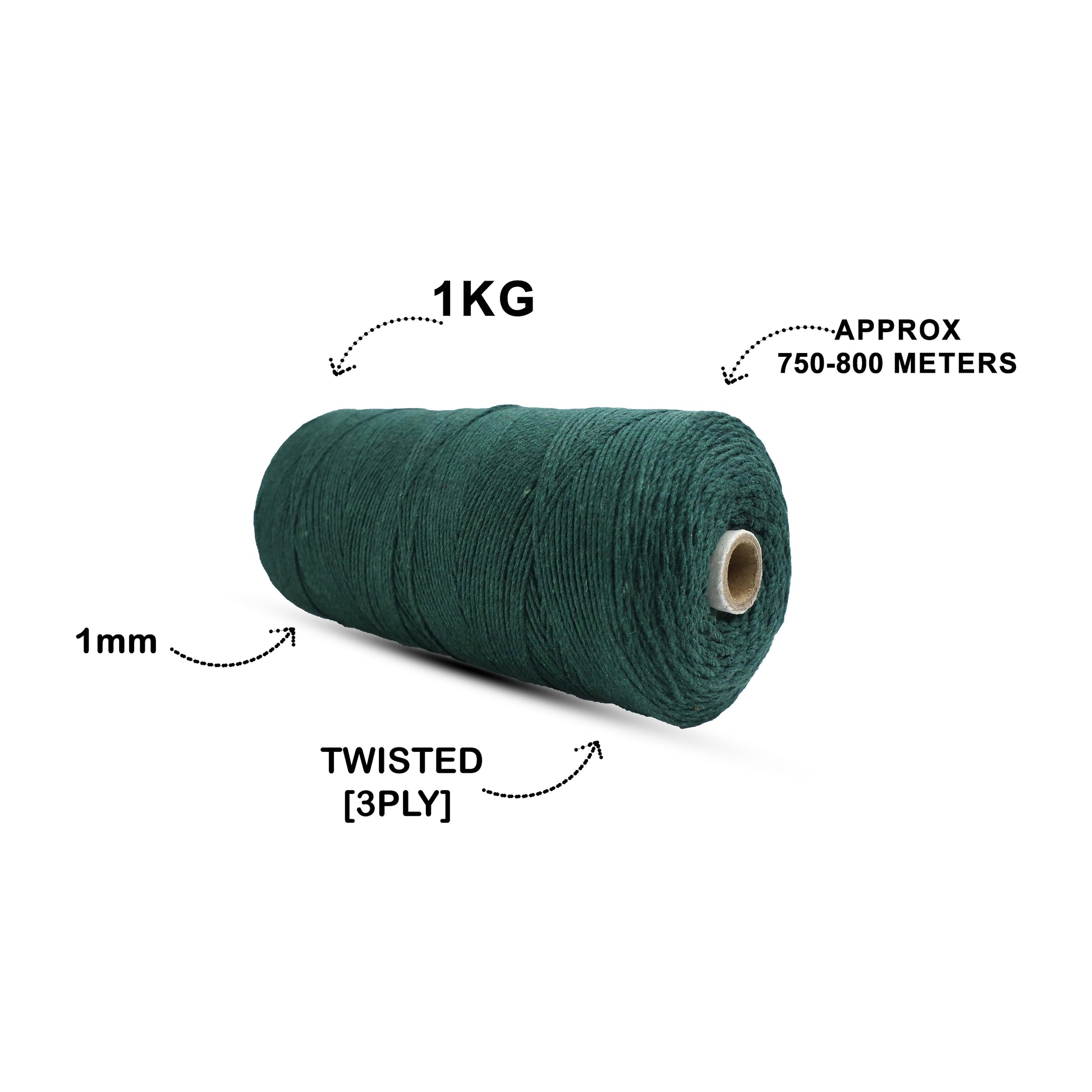 1mm Twisted (3Ply) | Forest Green | 750 Metres | 1kg Spool | Cotton | No 10