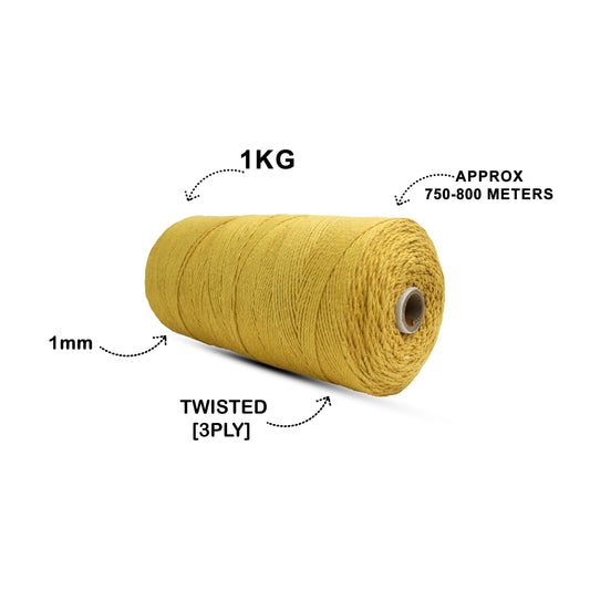 1mm Twisted (3Ply) | Mustard | 750 Metres | 1kg Spool | Cotton | No 07