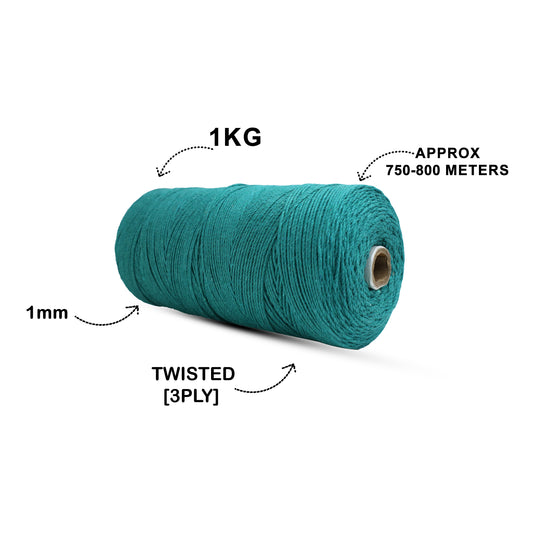 1mm Twisted (3Ply) | Teal Blue | 750 Metres | 1kg Spool | Cotton | No 39