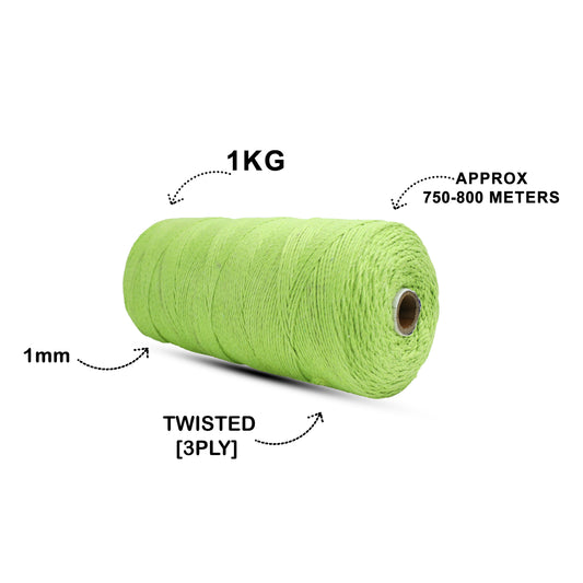 1mm Twisted (3Ply) | Parrot Green | 750 Metres | 1kg Spool | Cotton | No 13