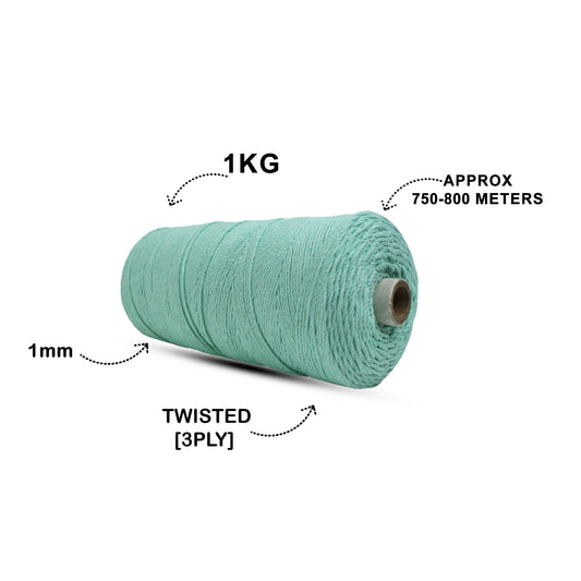 1mm Twisted (3Ply) | Mint Green | 750 Metres | 1kg Spool | Cotton | No 35