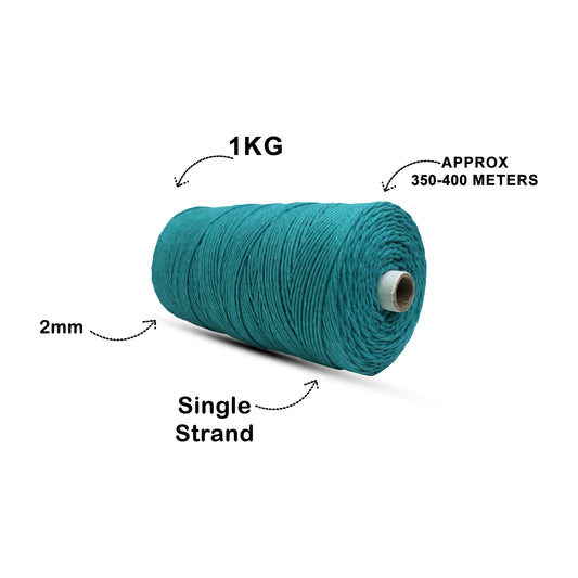 2mm Single Strand | Teal Blue | 350 - 400 Metres | 1kg Spool | Cotton | No 39