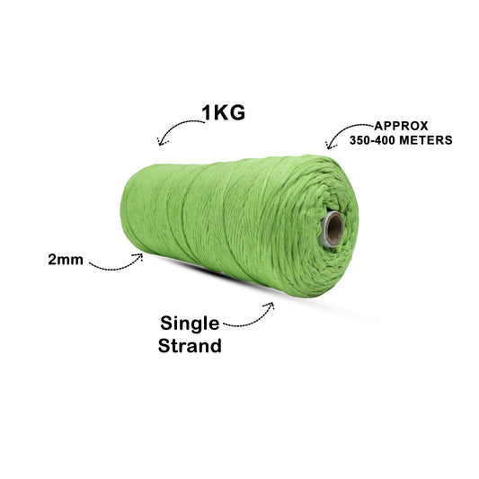 2mm Single Strand | Parrot Green | 350 - 400 Metres | 1kg Spool | Cotton | No 13