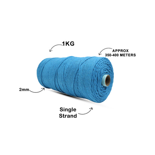 2mm Single Strand | Bright Blue | 350 - 400 Metres | 1kg Spool | Cotton | No 22