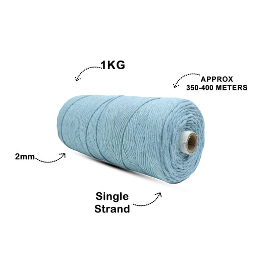 2mm Single Strand | Mint Blue | 350 - 400 Metres | 1kg Spool | Cotton | No 25
