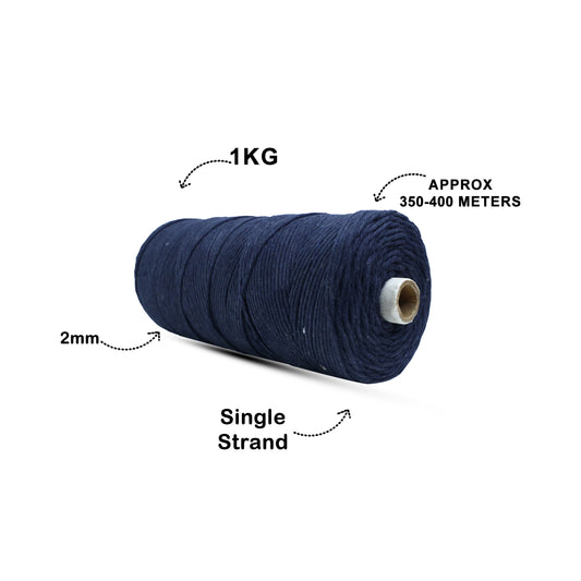 2mm Single Strand | Dark Blue | 350 - 400 Metres | 1kg Spool | Cotton | No 27