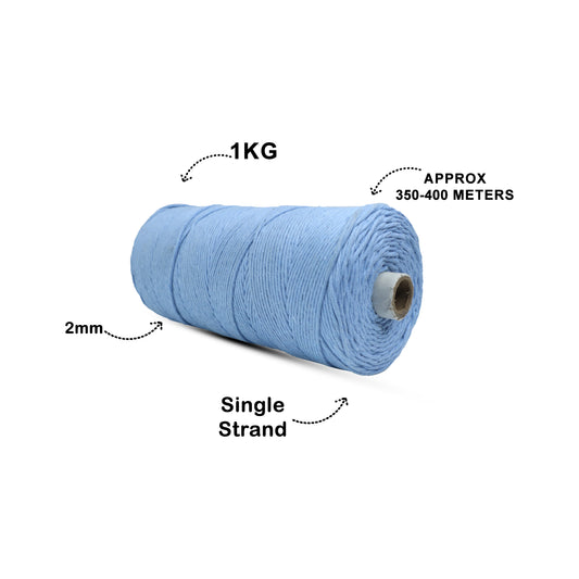 2mm Single Strand | Ice Blue | 350 - 400 Metres | 1kg Spool | Cotton | No 32