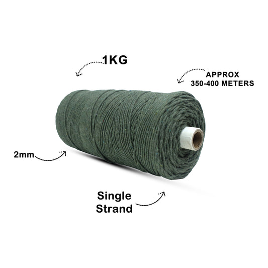 2mm Single Strand | Olive Green | 350 - 400 Metres | 1kg Spool | Cotton | No 14