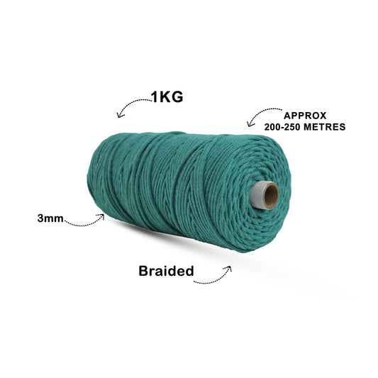 3mm Braided | Forrest Green |200-250 Meters | 1Kg Spool | Cotton | No 10