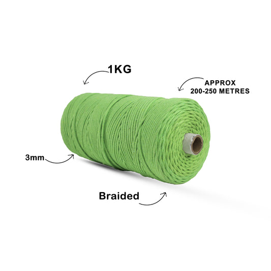 3mm Braided | Parrot Green |200-250 Meters | Approx 700gms | Cotton | No 13