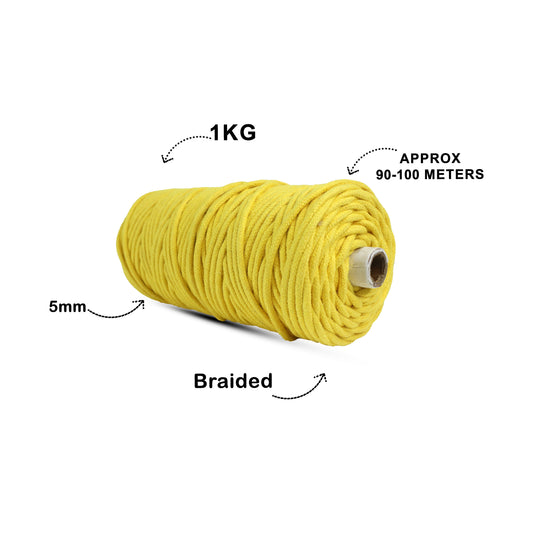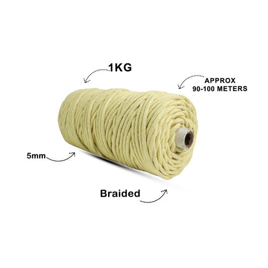 5mm Braided | Light Yellow | Approx 100 Metres | 1kg Spool | Cotton | No 09