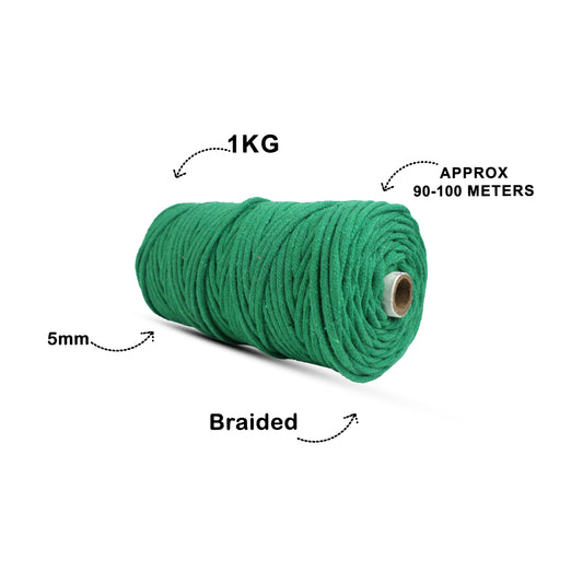 5mm Braided | Forrest Green | Approx 100 Metres | 1kg Spool | Cotton | No 10