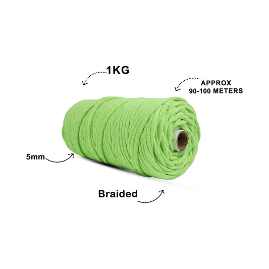 5mm Braided | Parrot Green | Approx 100 Metres | 1kg Spool | Cotton | No 13