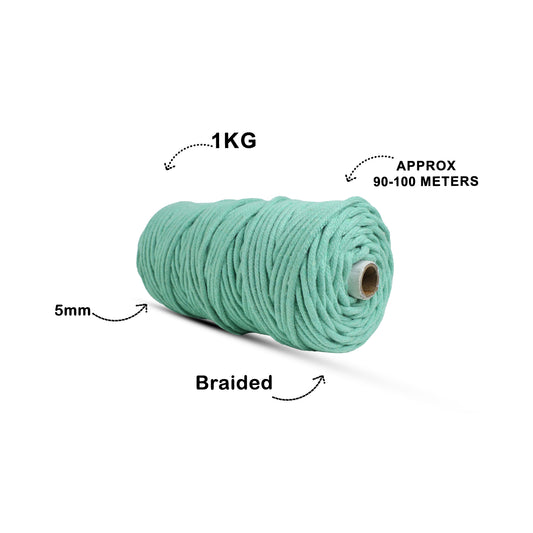 5mm Braided | Mint Green | Approx 100 Metres | 1kg Spool | Cotton | No 35