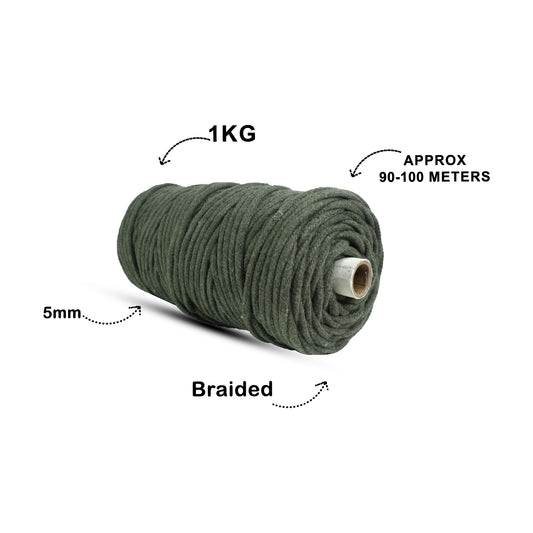 5mm Braided | Olive Green | Approx 100 Metres | 1kg Spool | Cotton | No 14