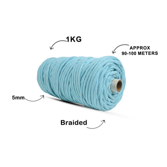 5mm Braided | Mint Blue | Approx 100 Metres | 1kg Spool | Cotton | No 25