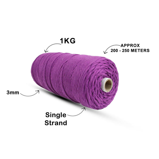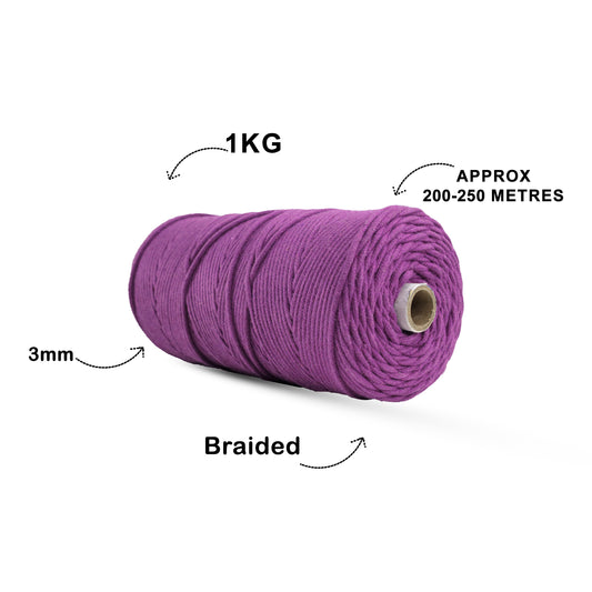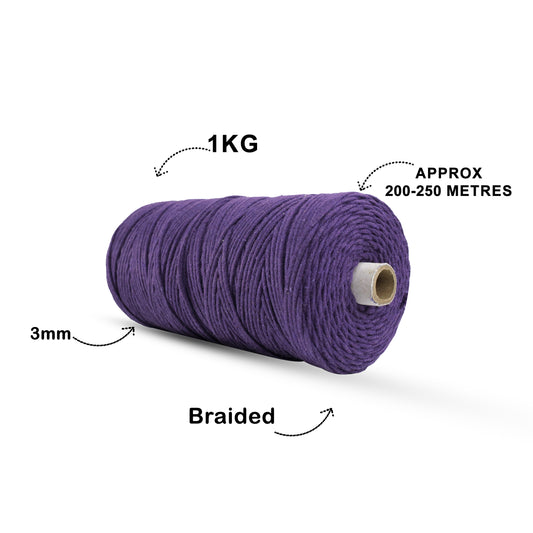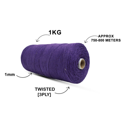 3mm Braided | Violet | 200-250 Meters | 1 Kg Spool | Cotton | No 21