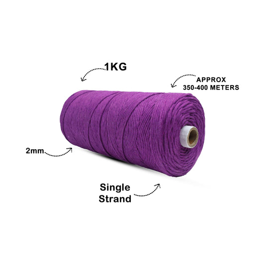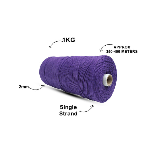 2mm Single Strand | Violet | 350 - 400 Metres | 1kg Spool | Cotton | No 21