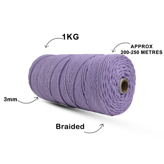 3mm Braided | Lavender | 200-250 Meters | 1 Kg Spool | Cotton | No 31