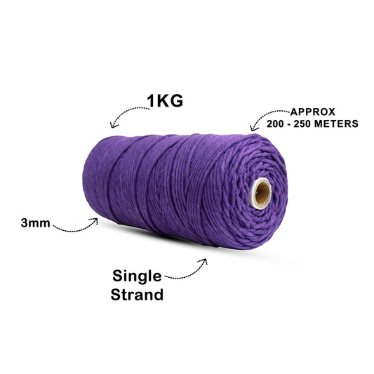 3mm Single Strand | Violet | 200 - 250 Metres | 1kg Spool | Cotton | No 21