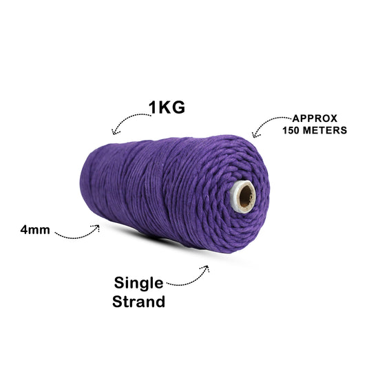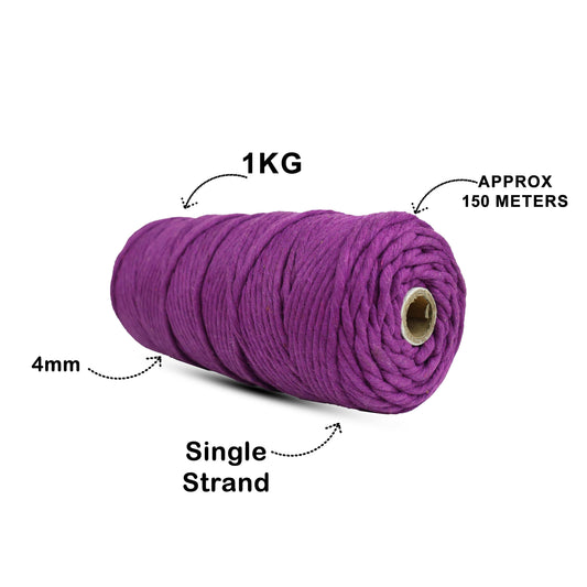 4mm Single Strand | Violet | 150 Metres | 1kg Spool | Cotton |No 21