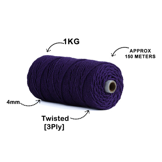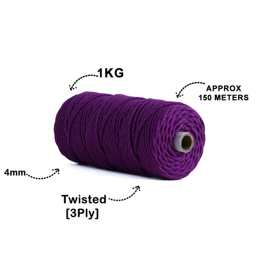 4mm Twisted (3Ply) | Violet | 150 Metres | 1kg Spool | Cotton | No 21