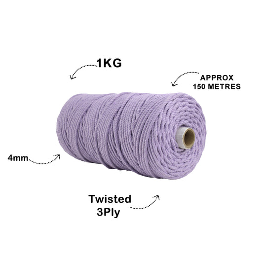 4mm Twisted (3Ply) | Lavender | 150 Metres | 1kg Spool | Cotton | No 31