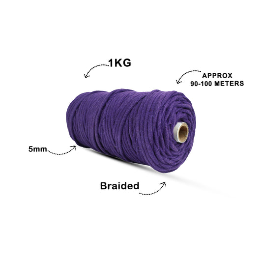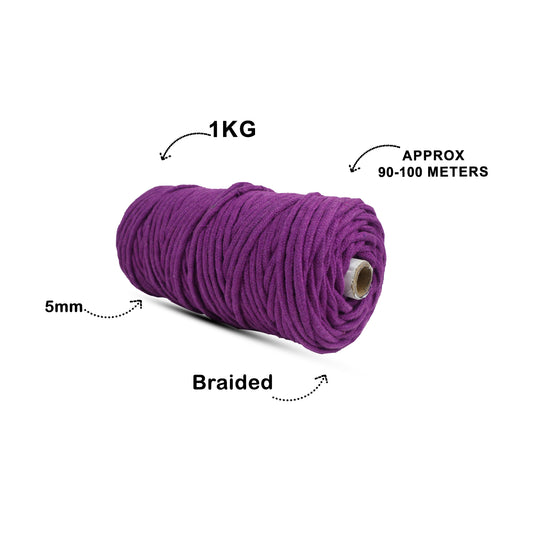 5mm Braided | Violet | Approx 100 Metres | 1kg Spool | Cotton | No 21