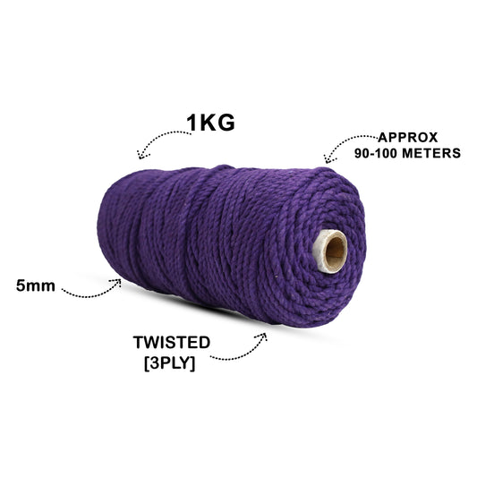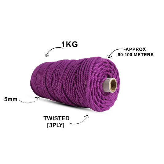 5mm Twisted (3Ply) | Violet | Approx 100 Metres | 1kg Spool | Cotton | No 21