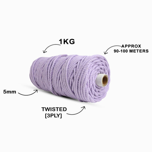 5mm Twisted (3Ply) | Lavender | Approx 100 Metres | 1kg Spool | Cotton | No 31