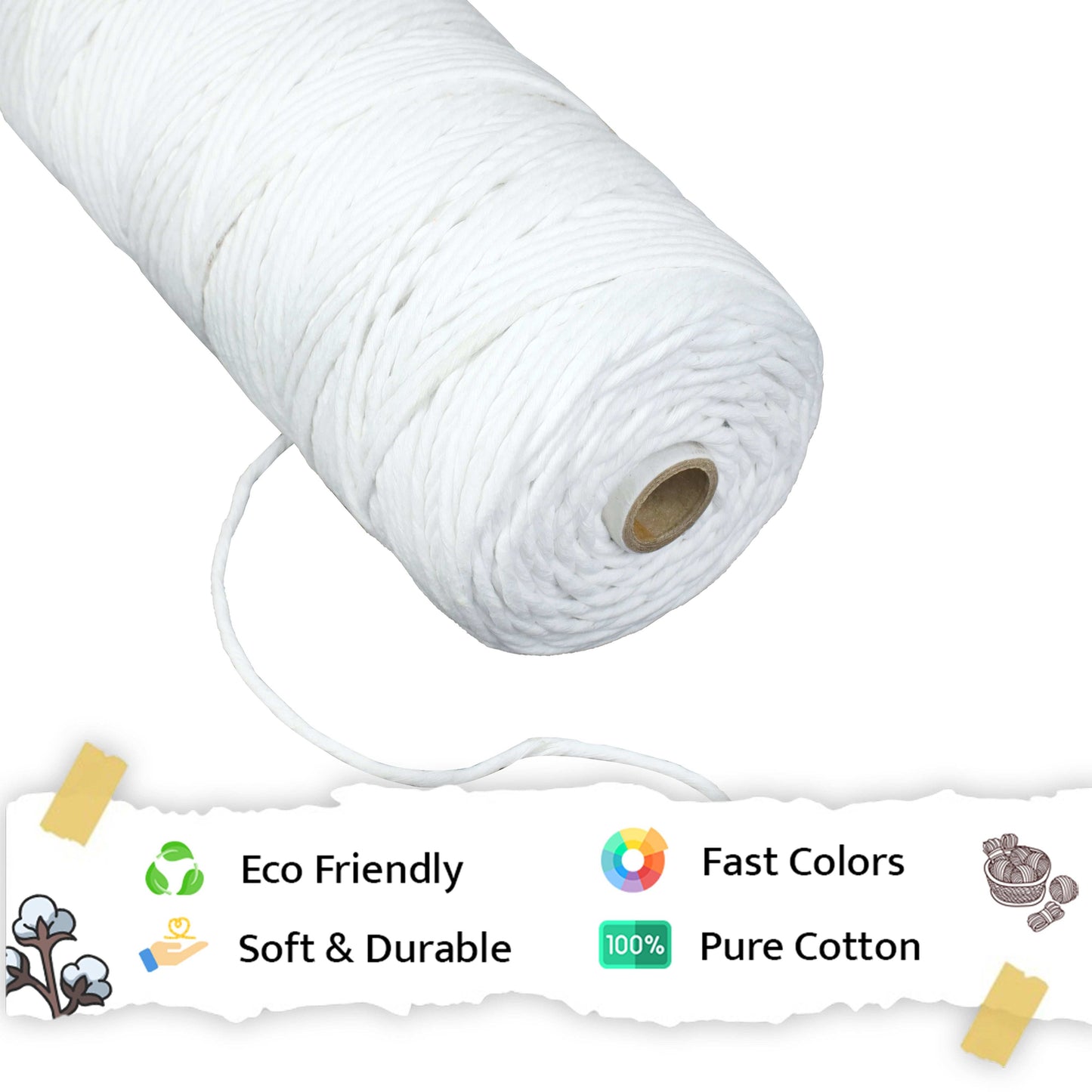 3mm Single Strand | Pure White | 200 - 250 Metres | 1kg Spool | Cotton | No 03