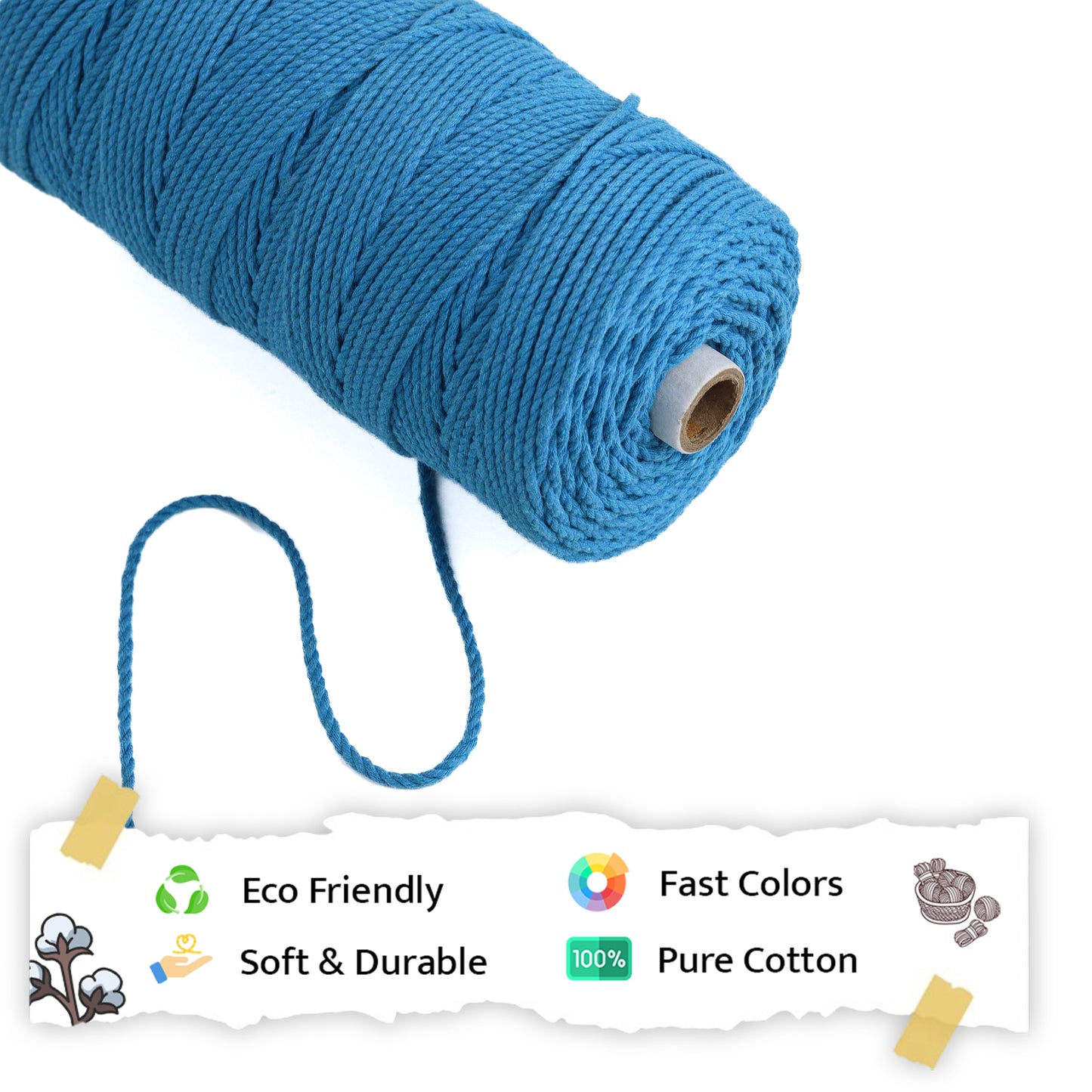 3mm Twisted (3Ply) | Bright Blue | 200 - 250 Metres | 1kg Spool | Cotton | No 22