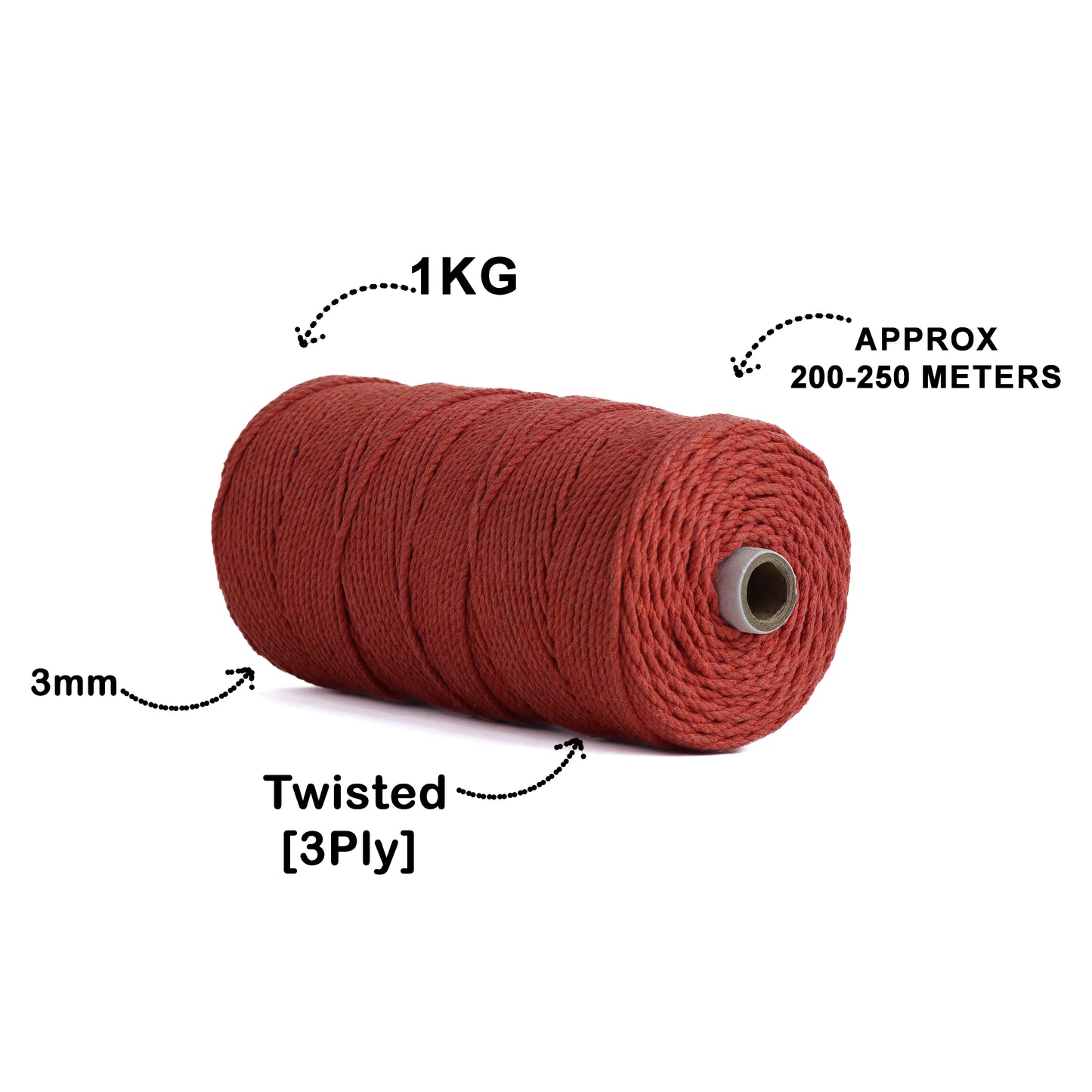 3mm Twisted (3Ply) | Rust | 200 - 250 Metres | 1kg Spool | Cotton | No 28